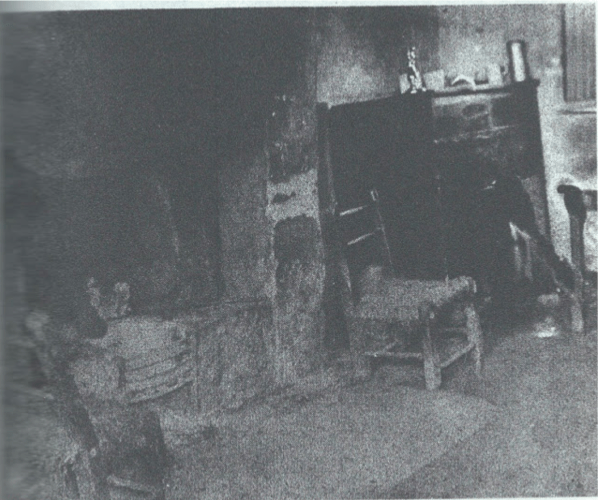 The cottage stood low and whitewashed on the slope above Ballyvadlea (now Ballyvadhea), a single-storey labourer’s dwelling with a thatched roof, earthen floor, and a hearth that never quite warmed the back room. Two small windows faced the boreen; a half-door let in the perpetual smell of turf smoke and wet fields. Inside: a settle-bed, a deal table, two stools, a dresser with willow-pattern plates, and a crucifix above the mantel.