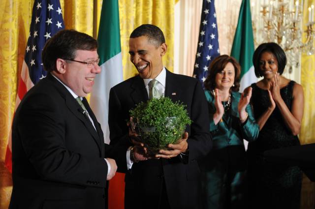The Irish Taoiseach — Ireland’s prime minister — presents the sitting President of the United States with a gift: a handcrafted bowl of Waterford Crystal, etched with shamrock motifs, and filled with fresh shamrocks, often grown in County Cork soil.